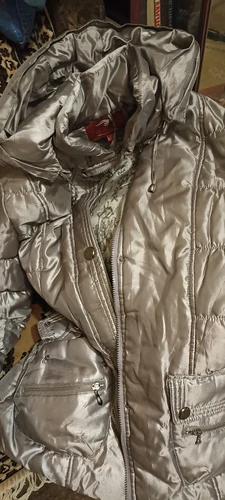 Куртка зимняя, чуть ниже пояса. Красивый цвет. Все работает. Есть проблема вверху с молнией (вылетели зубчики), надо закрепить чем-то (стопор поставить), чтобы не соскочил бегунок. Я не застегивала до конца. Капюшон есть. Много карманов,есть скрытые.